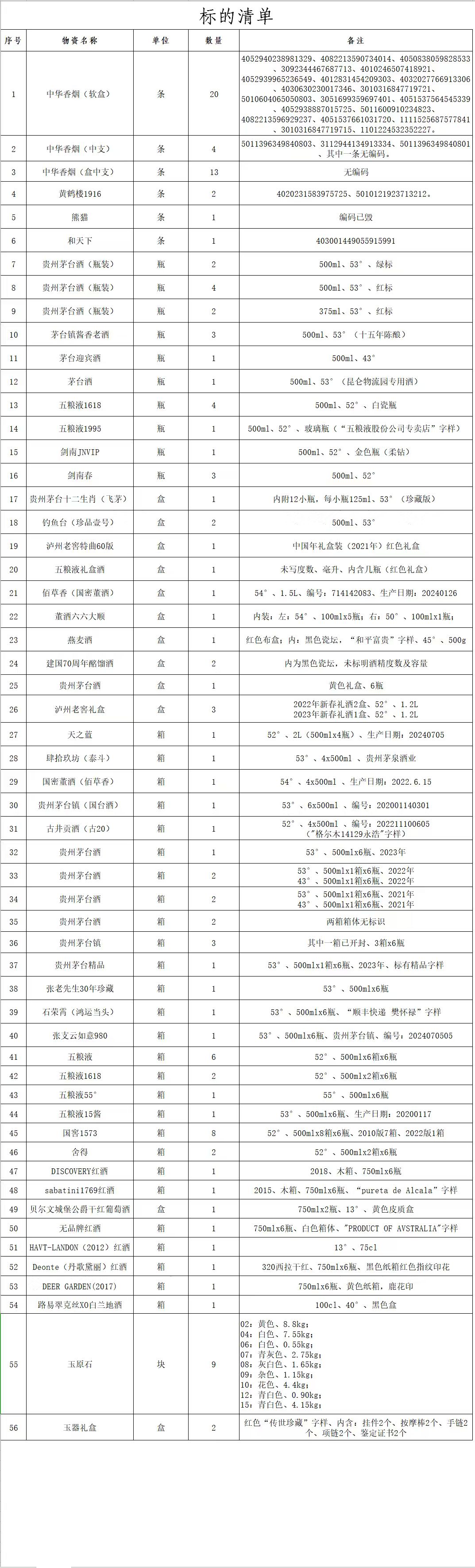 受委托,我公司于2025年10月24日上午10时在青海省公共资源交易中心对“一批罚没物资”(包括茅台、五粮液酒,黄鹤楼、中华香烟、红酒、玉原石等)面向社会进行公开拍卖。