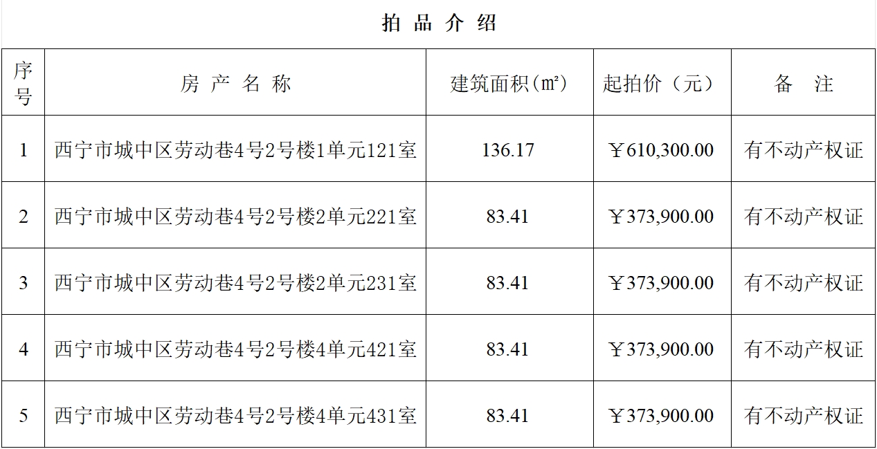受委托,我公司于2025年6月6日上午10时在青海省公共资源交易中心对“西宁市杰泰都市花园五套房产”面向社会进行公开拍卖。