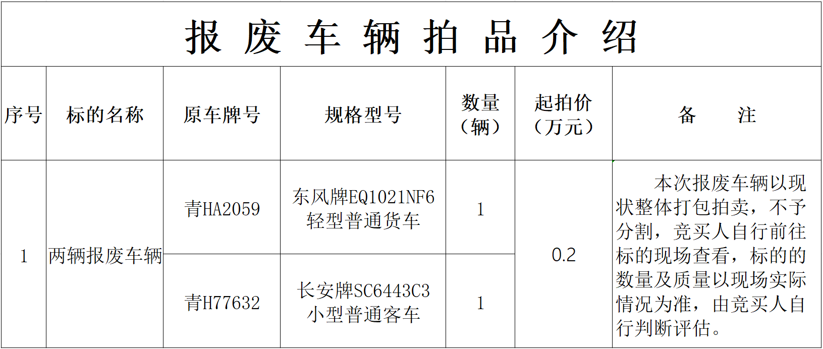 受委托,我公司于2025年3月7日上午11时在青海省公共资源交易中心对“两辆报废车辆”以整体打包的形式面向社会进行公开拍卖。