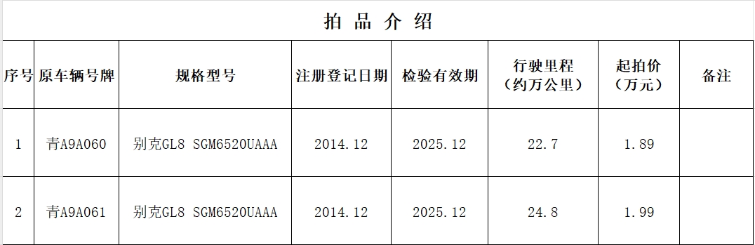 受委托,我公司于2025年7月15日上午11时在青海省公共资源交易中心对两辆“别克牌小型普通客车”面向社会进行公开拍卖。