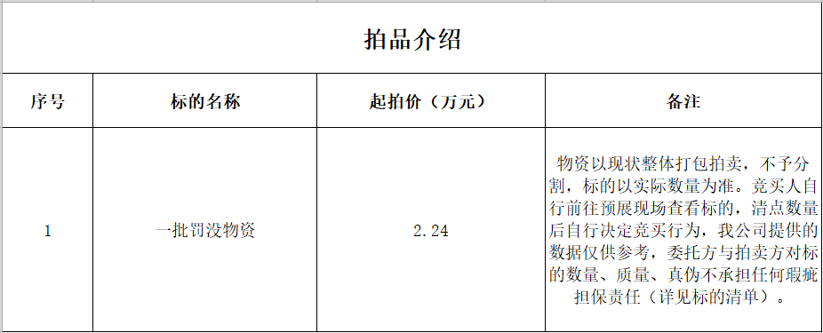 罚没物资拍卖公告