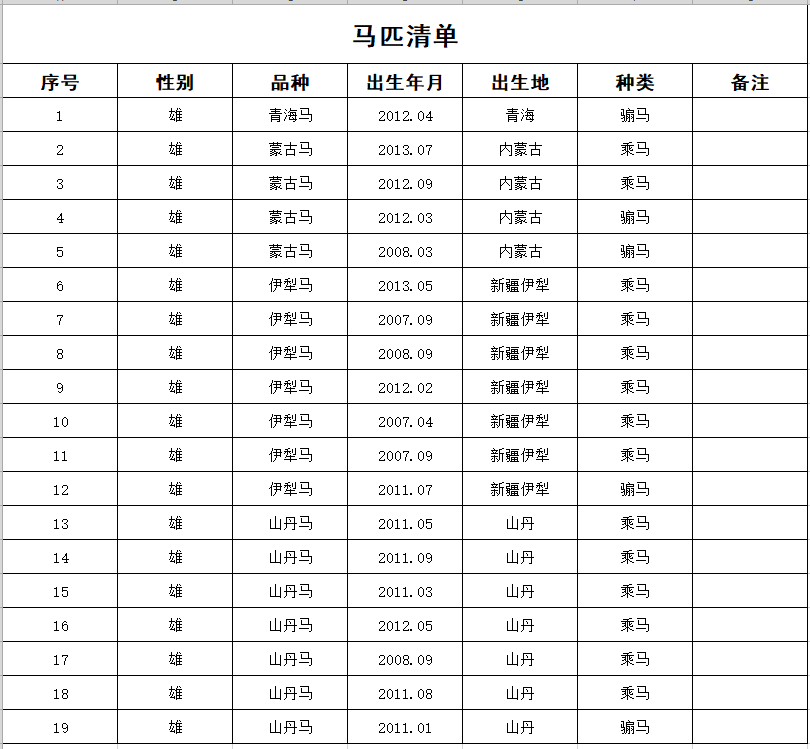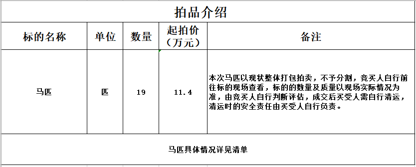 马匹拍卖公告