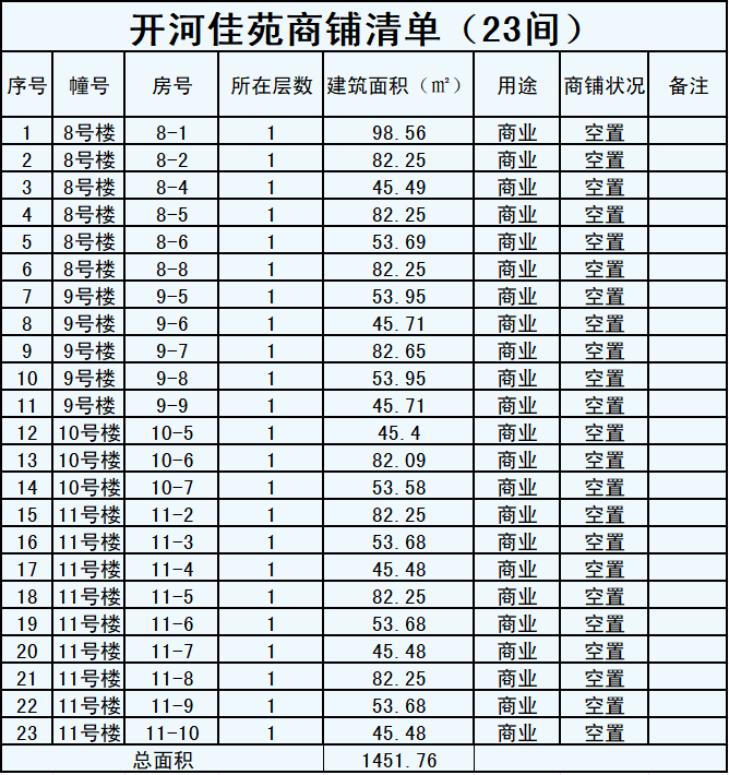 招商项目五:多巴开河佳苑23间商铺