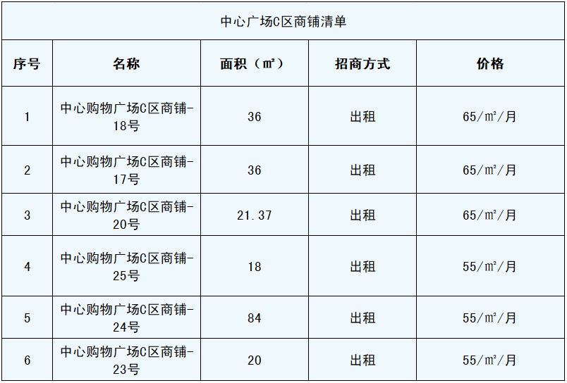招商项目十:中心购物广场C区商铺6间